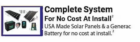 ¹ New solar + battery customers only. Purchase agmt req’d. Before rebate cost varies on system chosen. Min. after-install rebate (for solar + battery). Actual rebate varies on system & initial 12 mnths. of payments (or, for non-financed purchases, equivalent value as if financing used, as reasonably calculated by us). You are still responsible for paying your monthly loan to your lender. Rebate not applied toward your loan by us. Allow 6-8 wks. after install for processing. Exclusions may apply. Can’t combine with other offers. | ² Avail. w/ approv. credit. Must be 18+ / residential owner. Contact us for add’l details